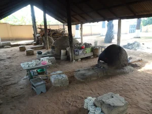 Handcrafted clay molds, themselves artistic creations, receive layers of colored glass powder. Artisans create patterns by strategically layering different colored powders, producing striped, mottled, or geometrically patterned beads through visual estimation rather than precise measurement. A dried cassava stalk inserted through each mold’s center provides an ingenious solution to a technical challenge: when exposed to kiln temperatures of 700 to 900 degrees Celsius, the cassava burns completely, leaving a perfect threading hole without requiring post-firing drilling.