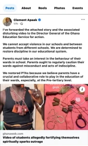 “I’ve forwarded the attached story and the associated disturbing video to the Director-General of the Ghana Education Service for action,” he stated.