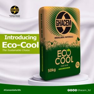Ghana’s leading cement manufacturer, GHACEM, has unveiled its latest innovation in sustainable construction: GHACEM ECO-COOL — a next-generation, eco-friendly cement product designed to meet the growing demand for greener building materials without compromising on strength and quality.