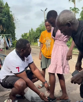 A video shared on his social media platforms captured moments from the exercise, showing pupils in Airport Residential Area and Okponglo in East Legon receiving the footwear. The children appeared excited as Dumelo and his team engaged with them during the distribution.