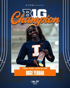 University of Illinois graduate student Rose Yeboah captured her first Big Ten Indoor Championships gold medal in the high jump on Saturday at the Indiana Farm Bureau Fall Creek Pavilion.